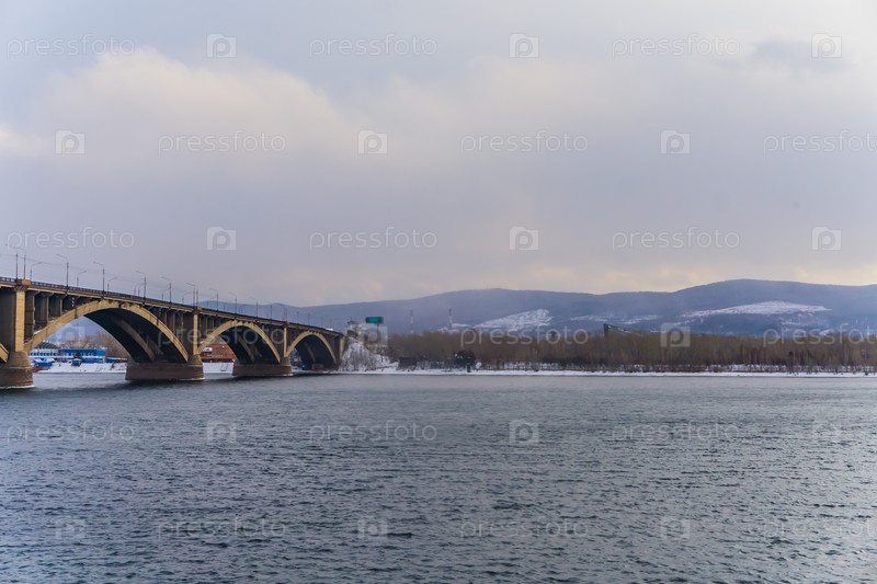 Морозное туманное зимнее утро над Енисеем в центре Красноярска