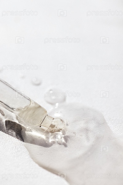 Крупным планом прозрачная сыворотка или масляное стекло макет на бутылке на светлом фоне