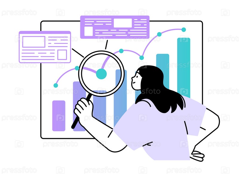 Женщина с увеличительным стеклом изучает данные