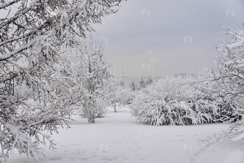 Морозное туманное зимнее утро над Енисеем в центре Красноярска