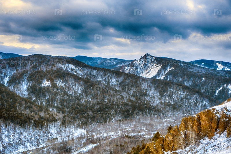 Морозное туманное зимнее утро над Енисеем в центре Красноярска