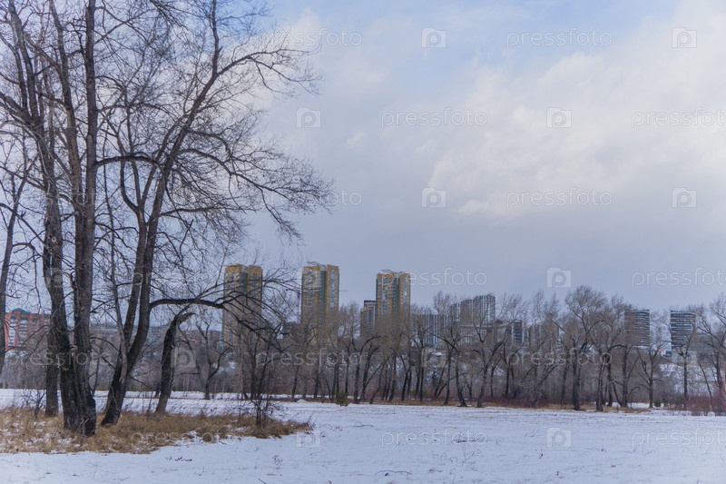 Морозное туманное зимнее утро над Енисеем в центре Красноярска