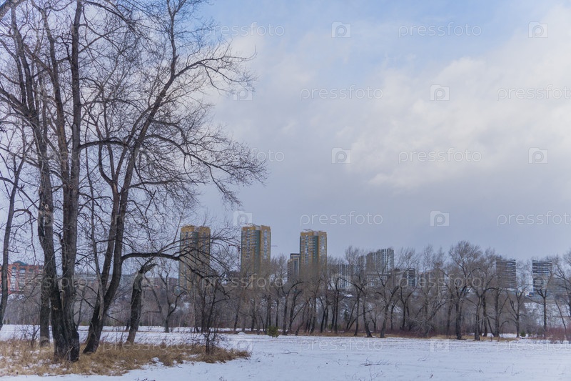 Морозное туманное зимнее утро над Енисеем в центре Красноярска