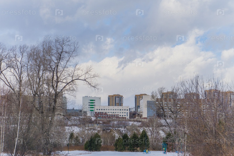 Морозное туманное зимнее утро над Енисеем в центре Красноярска