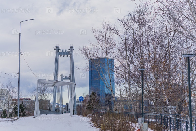 Морозное туманное зимнее утро над Енисеем в центре Красноярска