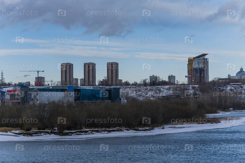 Морозное туманное зимнее утро над Енисеем в центре Красноярска