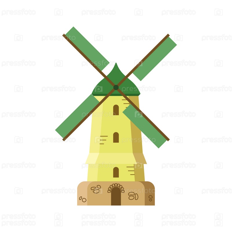 Старая ветрянка. Цветовая векторная иллюстрация, плоский стиль. Белый изолированный фон. EPS10