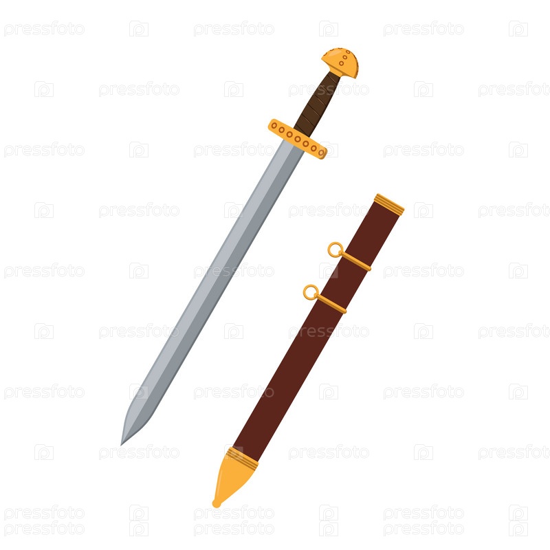 Римский меч и ножны. Цветная векторная иллюстрация в плоском стиле