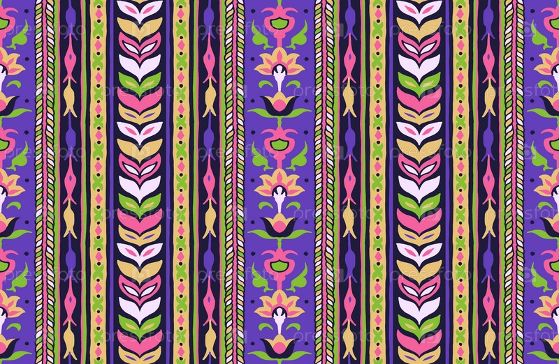 Геометрический дамасский орнамент. Икат границы. Этническая вышивка с листьями и монограммами. Племенная векторная текстура. Бесшовный народный узор в ацтекском стиле. Индийский, скандинавский, цыганский, мексиканский, африканский ковер
