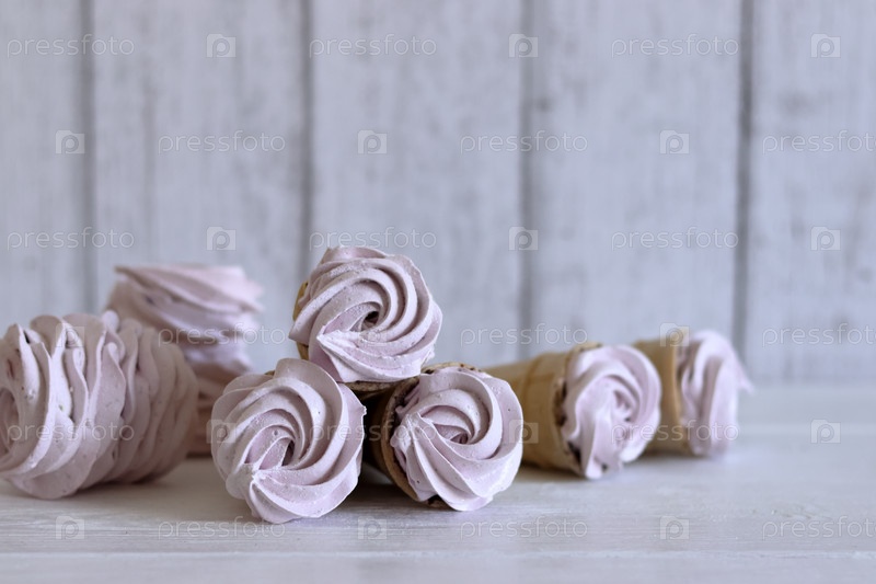 Зефир в вафельных рожках. На досках, окрашенных в белый цвет