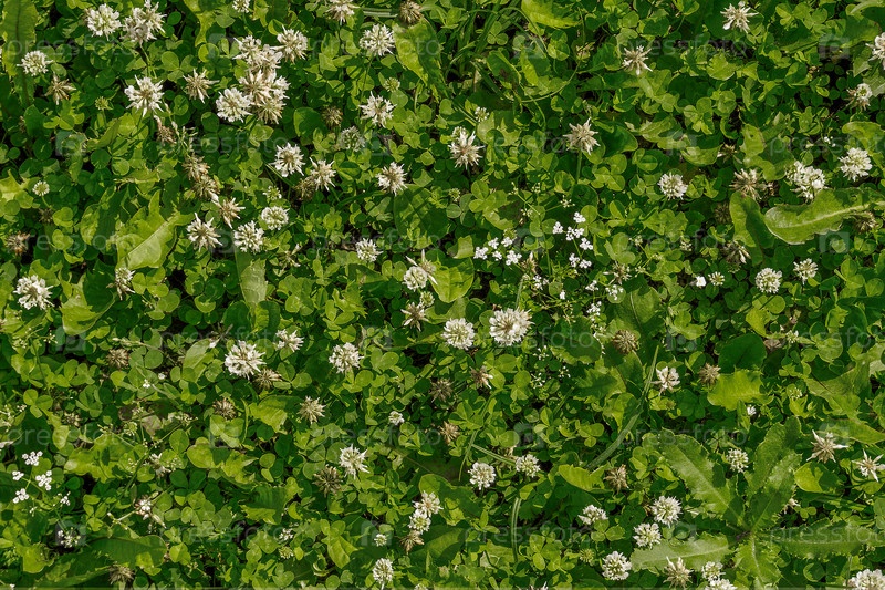 Текстура. Маленькие цветы белого клевера гармонично расположены на зеленой траве