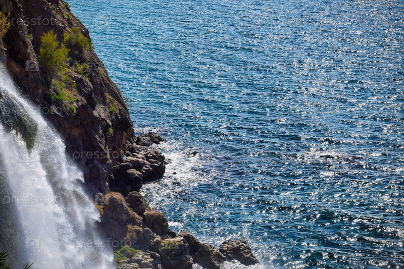 Один из водопадов Дюдена на берегу моря в Анталье