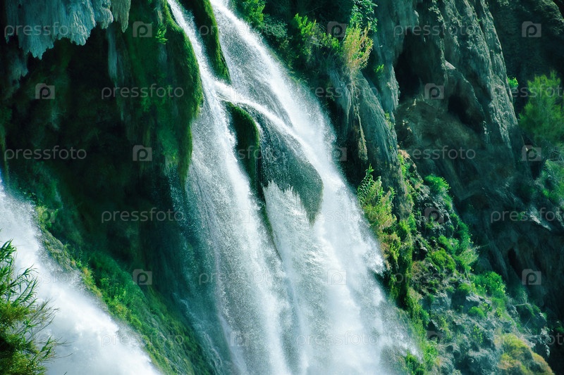 Водопад Антальи среди зеленых скал, Турция