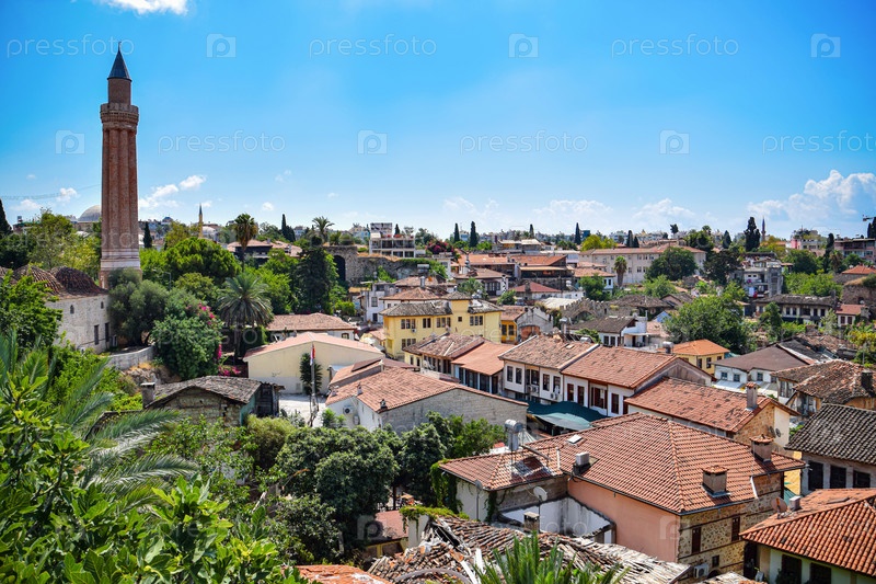 Достопримечательности Антальи: Минарет Йивли. Красивый пейзаж старого города - Калеичи, Турция. Достопримечательности Анталии: Минарет Yivli. Прекрасный ландшафт старого города - Kaleici, Turkey