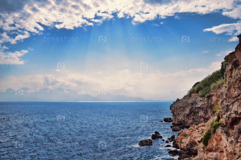 Морской пейзаж, скалистые берега моря
