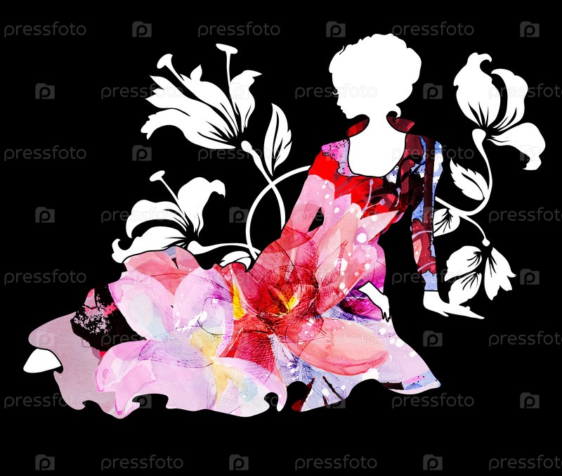 Силуэт девушки с цветами