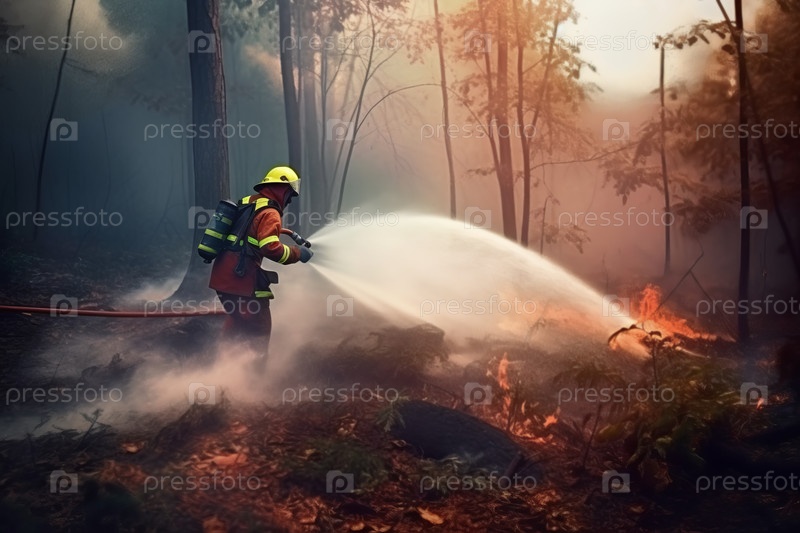 Огонь тушит горящий лес, изображение полностью сгенерировано AI