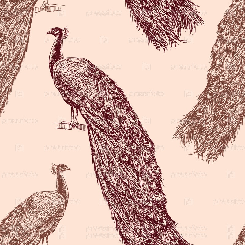 Узор из нарисованных павлинов