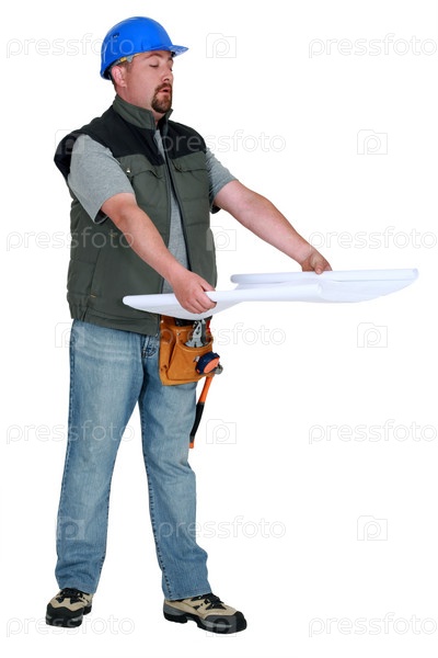 Строитель смотрит на план
