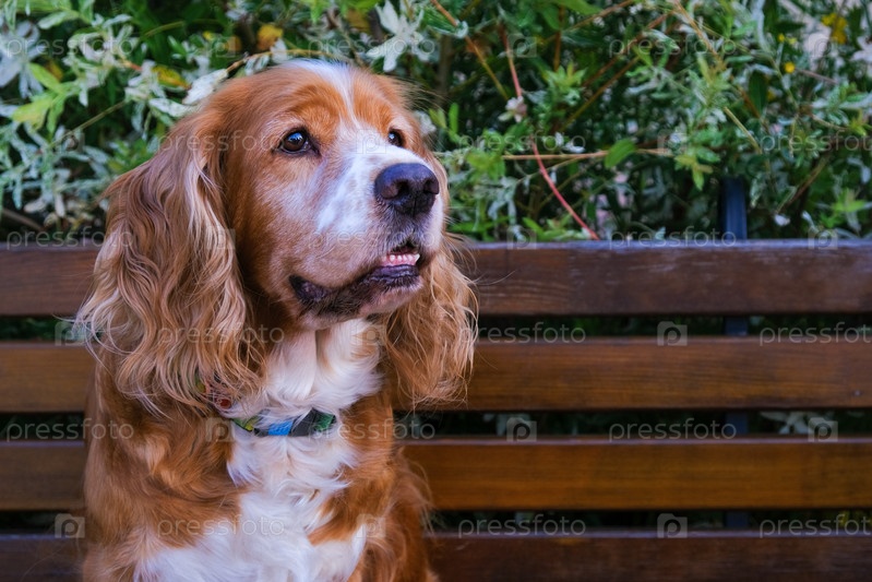 Умная, добрая собака породы русский спаниель в возрасте