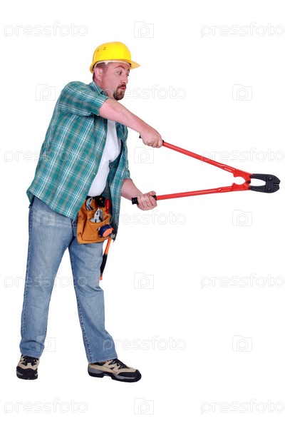 Строительный рабочий использует болторез