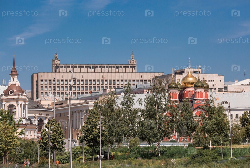 Москва, Россия, 2023: Знаменский собор на Варварке в осенний день. Вид на храм со стороны парка «Зарядье»