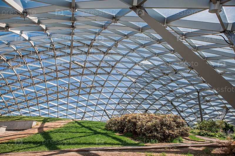 МОСКВА, РОССИЯ - 9 июня 2023 года: под стеклянным куполом амфитеатра в парке "Зарядье" в Москве. Самая большая в мире полупрозрачная конструкция, которая согреет вас зимой