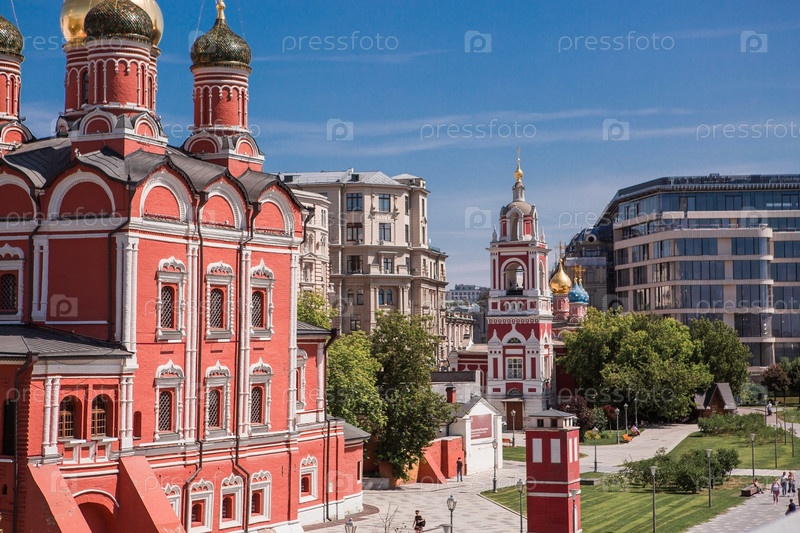 Москва, Россия, 2023: Знаменский собор на Варварке в осенний день. Вид на храм со стороны парка «Зарядье»