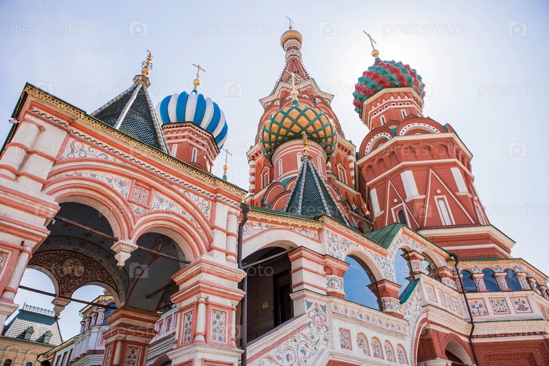МОСКВА, РОССИЯ - 9 ИЮНЯ 2023 г.: Собор Василия Блаженного на Васильевском спуске на Красной площади в солнечный день на фоне ярко-голубого неба. Популярная туристическая достопримечательность Москвы