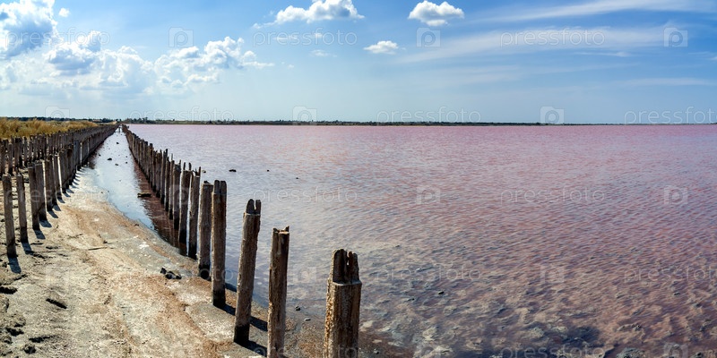 Широкоугольная панорама розового озера Сасык-Сиваш