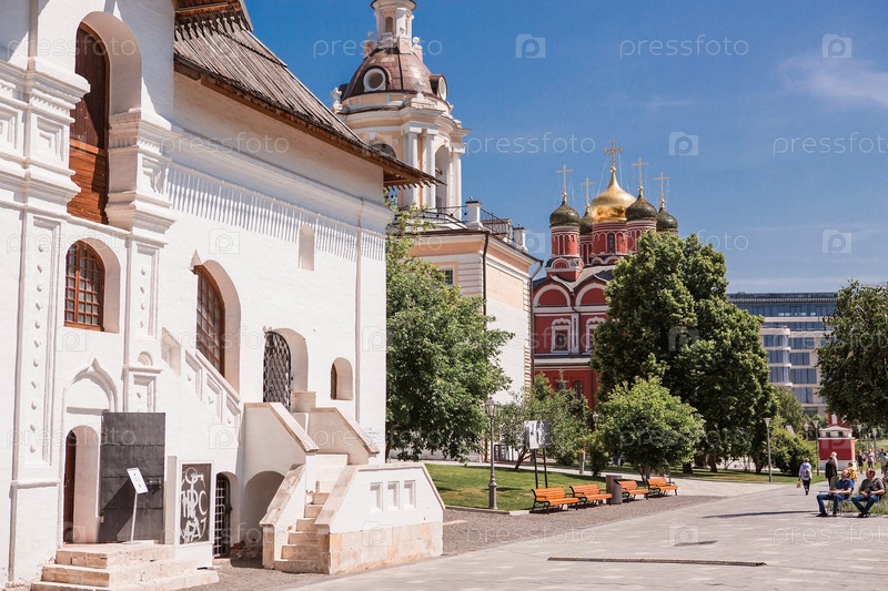 Москва, Россия, 2023: Знаменский собор на Варварке в осенний день. Вид на храм со стороны парка «Зарядье»