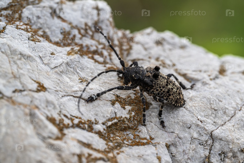 Жук-усач на скале в горах