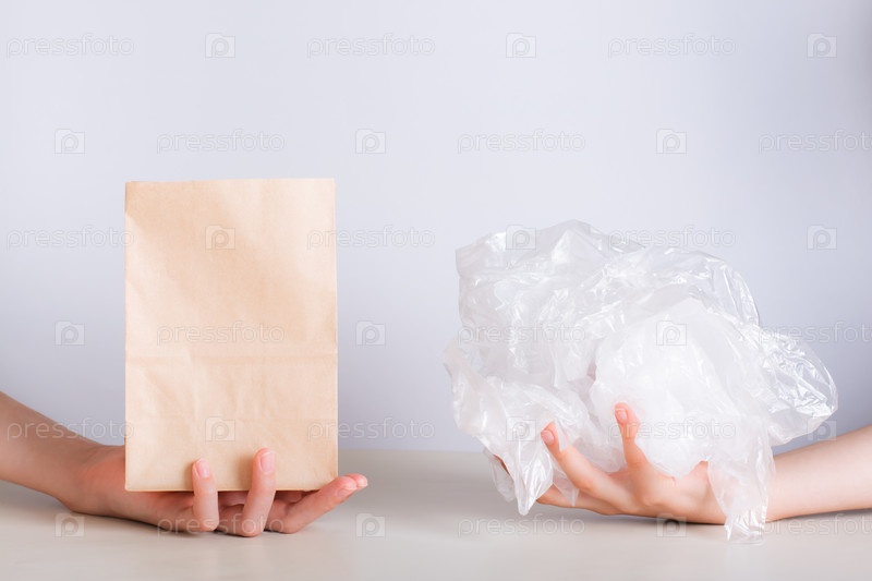Выбор между экологически чистым бумажным пакетом и одноразовым пластиковым пакетом