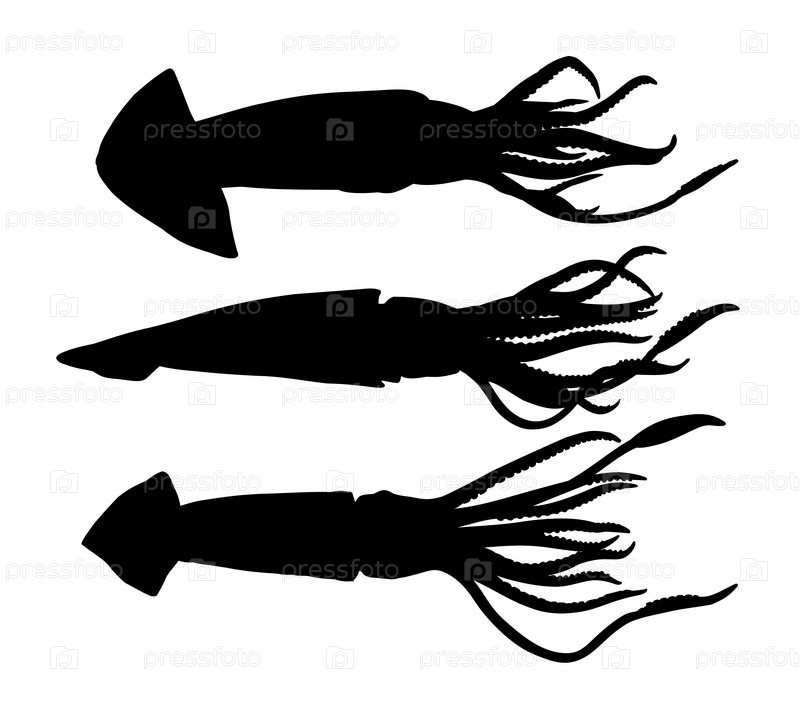 Набор силуэтов морских кальмаров