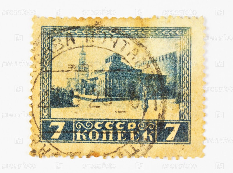 Винтажная почтовая марка - Мавзолей Ленина на Красной площади в Москве, СССР. Творческий фон филателии, имеет научный, исторический и художественный интерес
