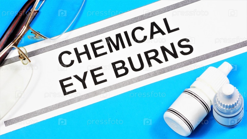 Химические ожоги глаз. Текстовая метка для обозначения состояния здоровья зрения. Диагноз поставил офтальмолог. Лечение процедурами и медикаментами
