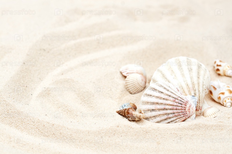 Ракушки в песке, летний фон