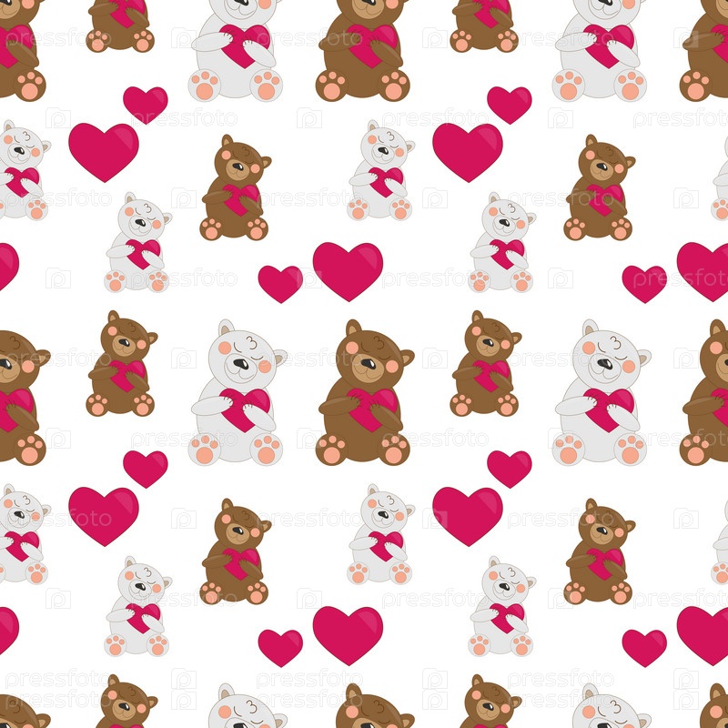 Узор медведей коричневый и полярный с сердечками
