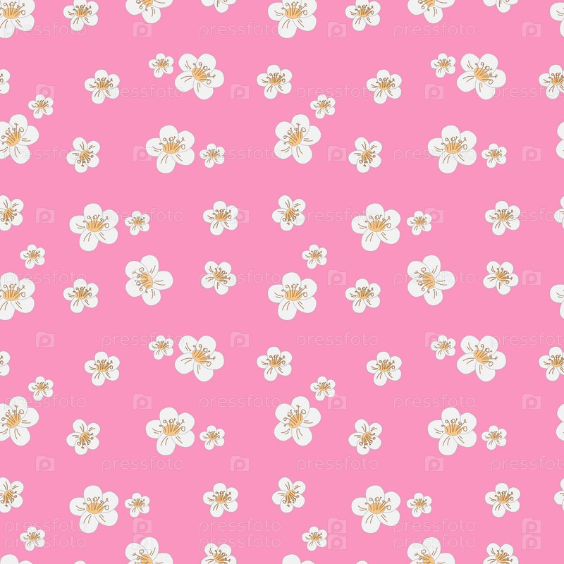 Узор белые весенние цветы на розовом фоне