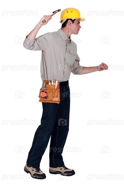 Молодой строитель с молотком
