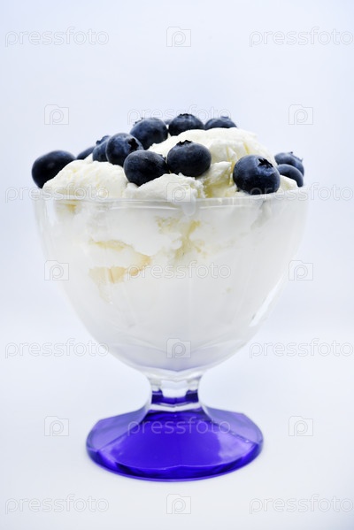 Стеклянная ваза с мороженым и черникой. Мороженое с черникой
