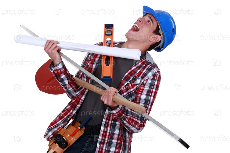 Рабочий с кучей инструментов