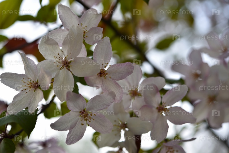 Яблоневые цветки нежно-розового цвета весной. Красивые цветы яблока и боке. Крупные цветы