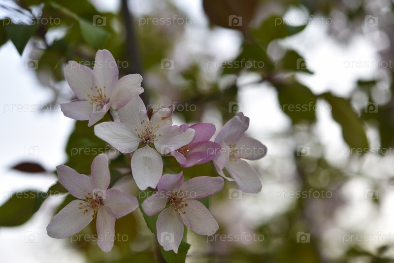 Яблоневые цветки нежно-розового цвета весной. Красивые цветы яблока и боке. Крупные цветы