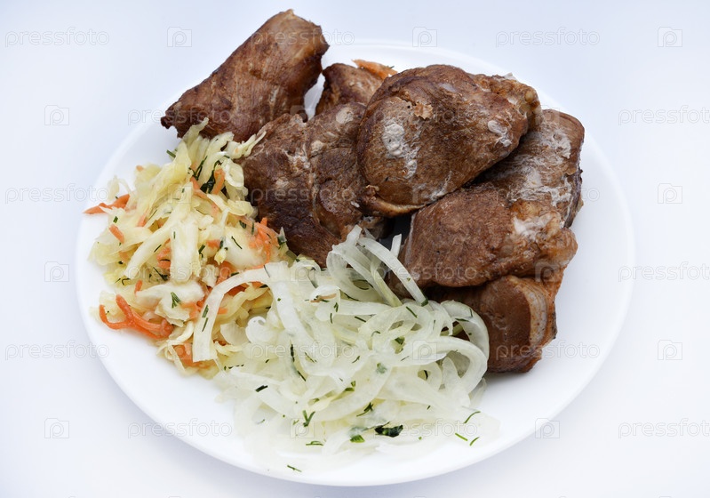 Красивые жареные кусочки свинины. Шашлык из свинины с овощами. Мясо на тарелке