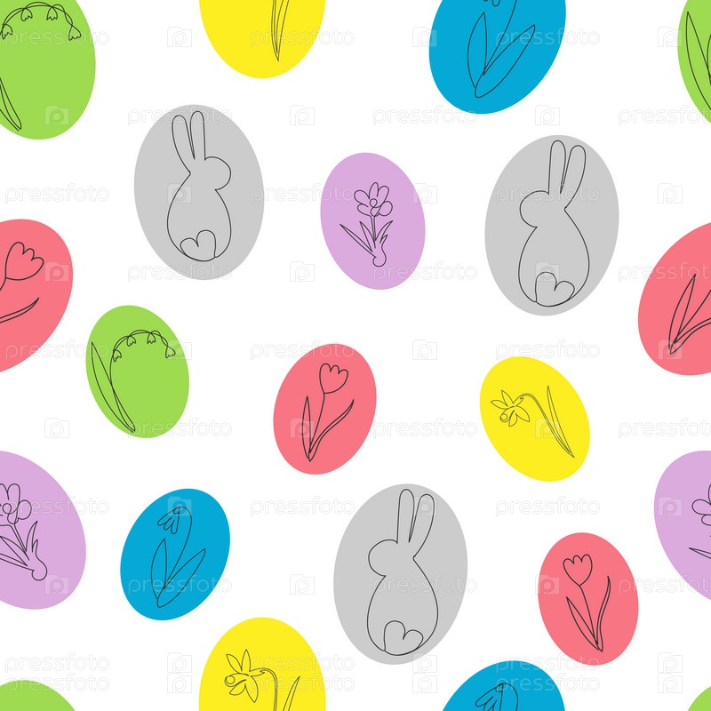Узор из пасхальных яиц с цветами и кроликом