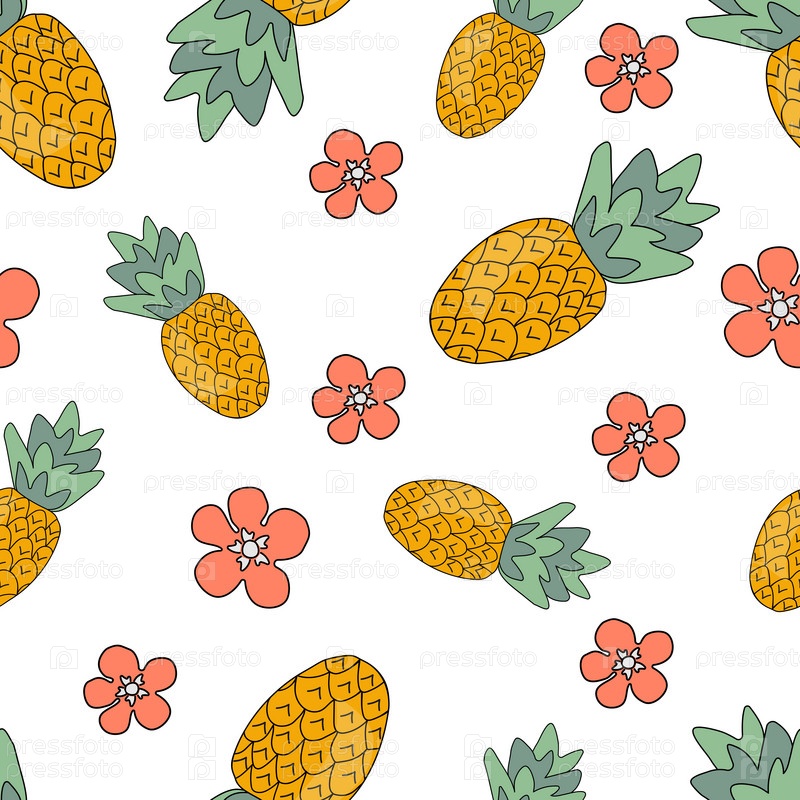 Узор из ананасов и розовых цветов