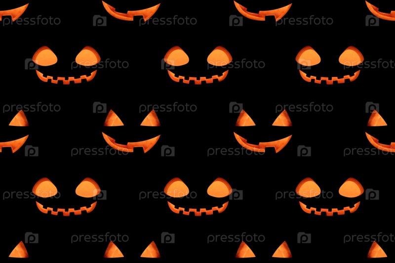 Бесшовный узор со светящейся улыбкой фонаря Джека на черном фоне. Джек о фонарь фонарь тыквы головы фон