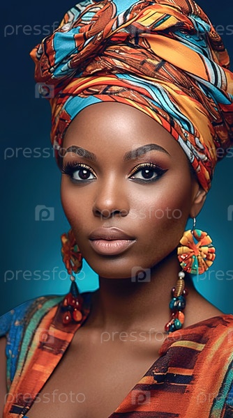 Портрет афроамериканки в тюрбане с африканским принтом. Генеративный ИИ