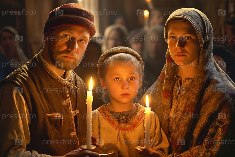 Обычная семья пришла в храм помолиться со свечами. Генеративный ИИ